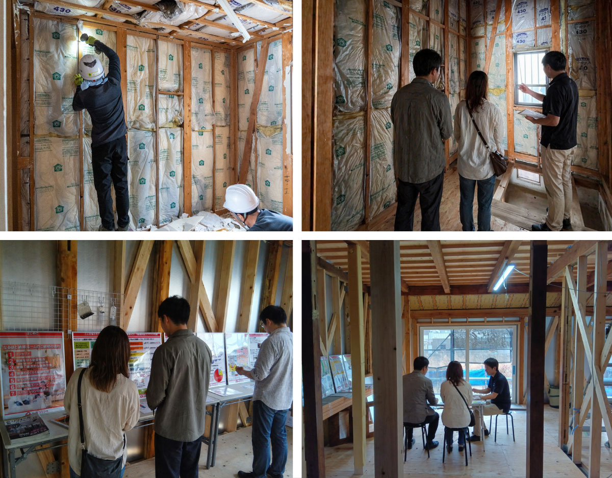 今回の見学では壁や床、天井をはがして古い断熱材などが見えている状態を実際見ていただけます。